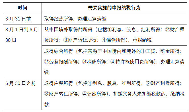 3、对于上一年的所得,关注3-6月间需要且能够实施的申报纳税行为